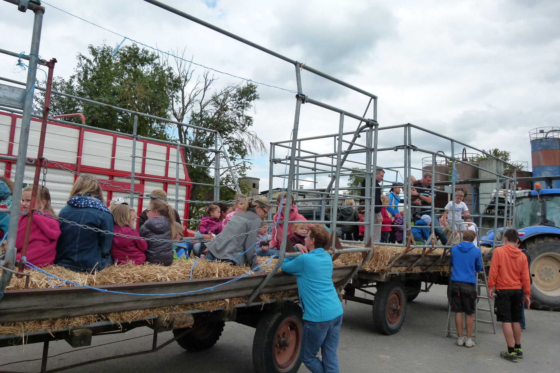 mit einer Rundfahrt auf dem Traktor, Erklärungen zu verschiedenen Getreide- und Obstsorten, Rätsel